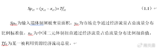比如2024年保守推算的全国非金融国有企业总资产为388万亿元,资产利润率为1.11%,而竞争性非国有企业资产利润率为4.5%,以(1.2)式计算,生产输出端按照标准值应该输出但没有输出的产出流量,也即由非竞争性生产企业形成的资本流量闸板面积为292万亿元/年。